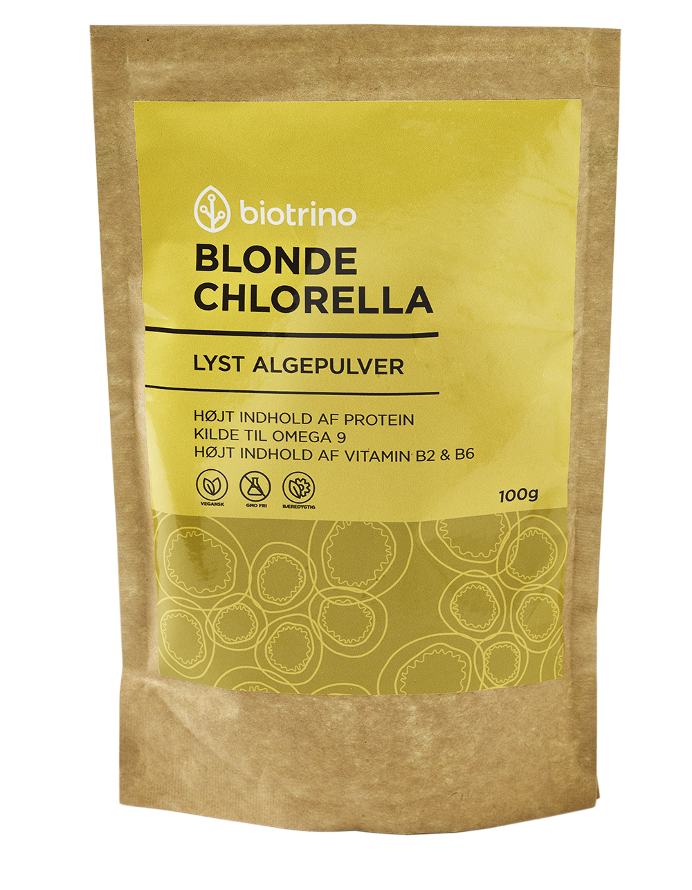 Blonde Chlorella er en såkaldt mikroalge. På baggrund af algens exceptionelle nærringsindhold betegnes den som en superfood. I ren form og helt ubearbejdet består den af 60% protein, et hav af vitaminer, omega 6-9 fedtsyrer, er rig på fibre. Den indeholder ingen almindelige allergener.